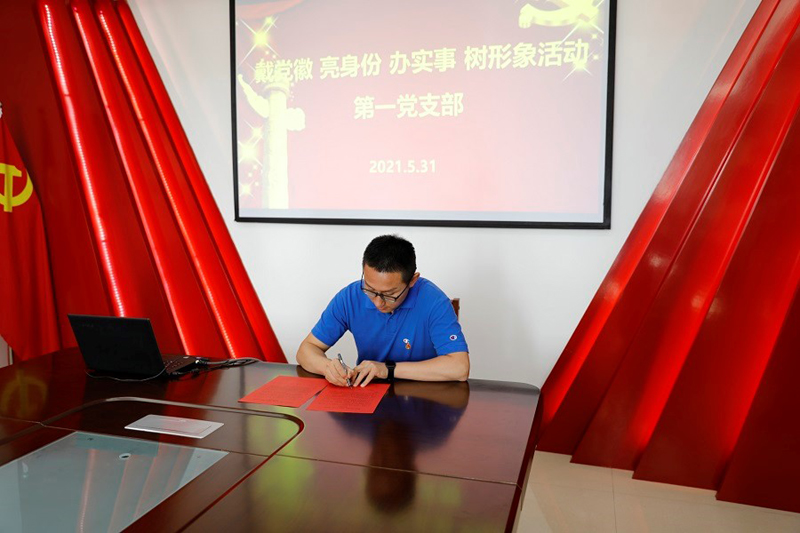 “我是共产党员,我承诺”。在国资运营公司党建活动中心,各党支部组织了开展“戴党徽、亮身份、办实事、树形象”活动,党员签署承诺书,将党史学习成效化为日常工作中的一言一行,全力开展“我为群众办实事”实践活动。